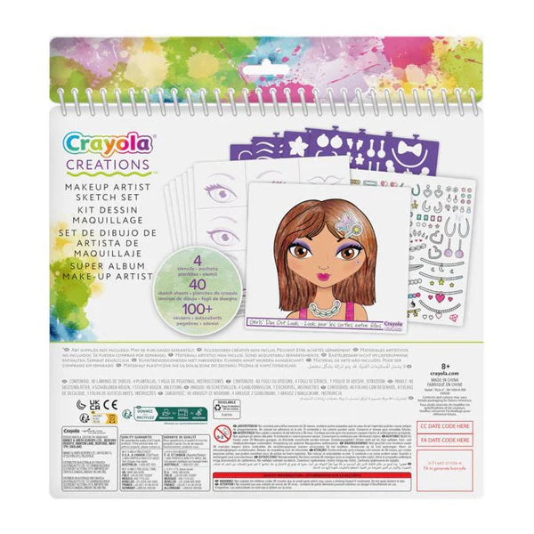 Have fun colouring and creating cute and fashionable designs with Crayola Creations Fashion Sketch Set! Great travel companion for kids on the go! Crayola Creations Fashion Sketch Set includes 40 sketch sheets, 5 stencil sheets, 62 stickers and instructions. Bound together so that you can take your sketches wherever you go!