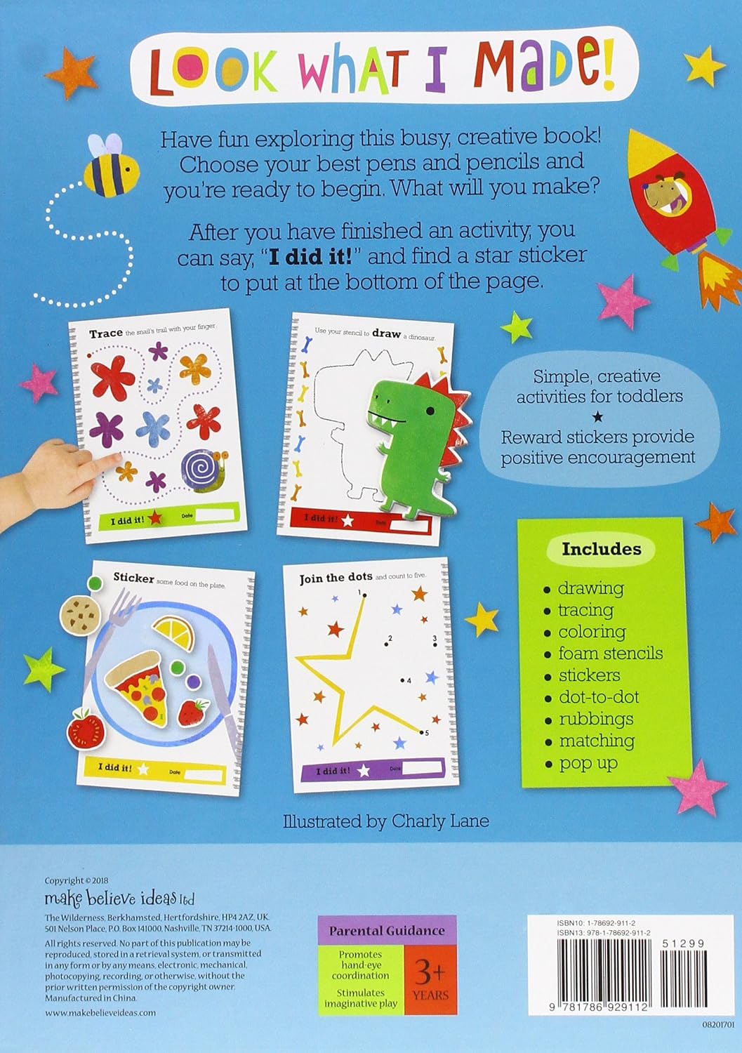 Delightful and engaging first art book for young children with coloring and stickers included! Introducing Look What I Made! a creative outlet for little ones just starting to doodle!